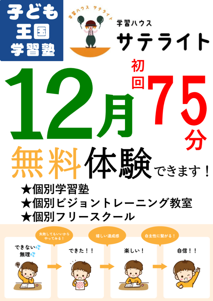 障がいがあってもなくても、みんなが『楽しく!』通って、みんなが『楽しく!』学ぶことができる学習塾『子ども王国学習塾』学習ハウスサテライト。