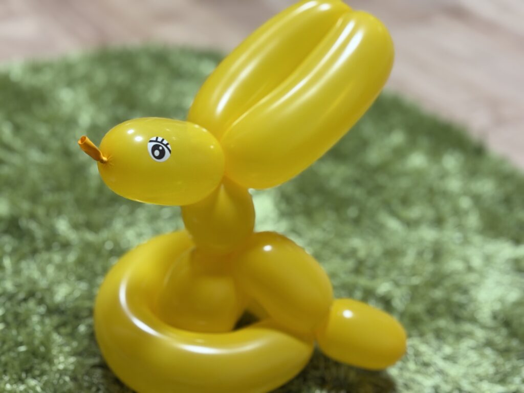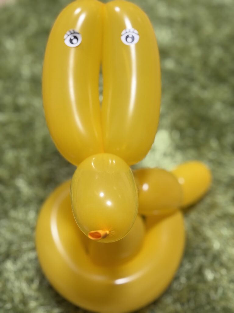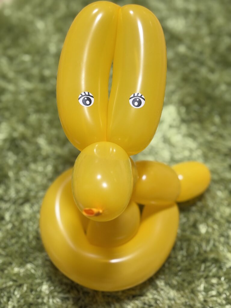 ⇒バルーンアートのうさぎさん。もし、あなたなら、目のシールをどこに貼りますか!?